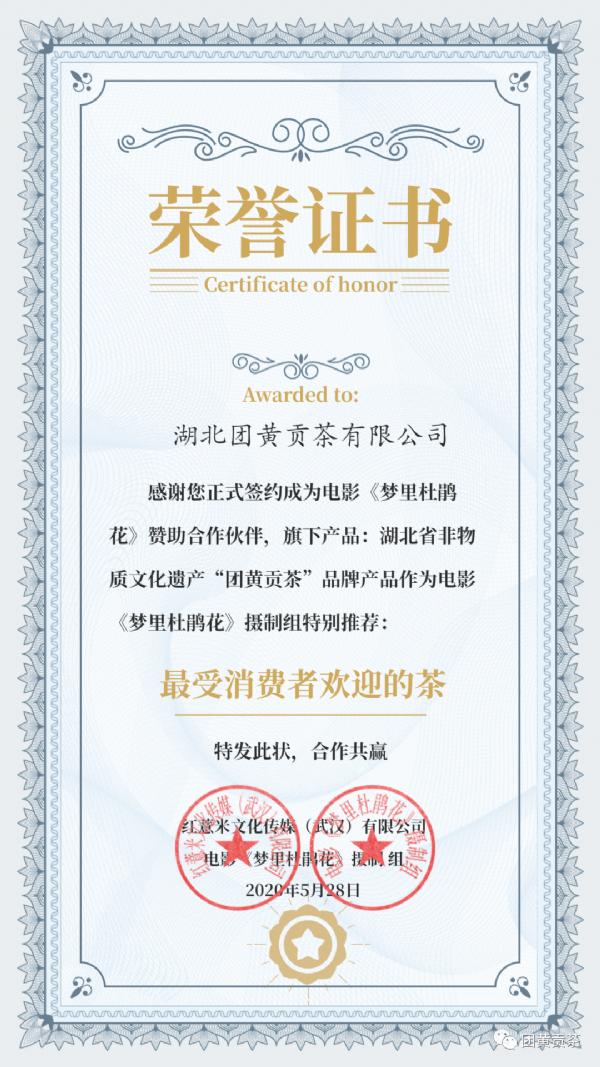 電影《夢里杜鵑花》日前正式與湖北團黃貢茶有限公司成功簽約成為贊助合作伙伴:"團黃貢茶"正式成為電影《夢里杜鵑花》特別推薦:最受消費者歡迎的茶。 團黃貢茶始于唐代,湖北“團黃”、“蘄門”與安徽的“黃芽”并稱“淮南三茗”,因其“色澄碧而清冽,味馥郁而沁芳”成為歷代朝廷貢茶。 唐代茶圣陸羽《茶經(jīng)》中有英山產(chǎn)茶之記載,《英山縣志》、《六安州志》均有貢茶的記載!逗蓖ㄖ尽肪矶“輿地志物產(chǎn)”中關于蘄門團黃有十分詳細的記載:唐代李肇在《國史補》中記載蘄州有蘄門團黃;王觀國《學林新編》中說“蘄門團黃有一旗一槍之號言一葉一芽也”;宋代馬端臨《文獻通考》中說“蘄門團黃茶之極品也”;明代李時珍《本草綱目》中記載“茶之美者,蘄州之團黃”;陸羽《茶經(jīng)》中說“淮南茶之出蘄州,黃州者下并當時制有未精耶”。北宋大詩人歐陽修詩中說“共約試團黃,槍旗幾時綠”。宋代才子蘇東坡在黃州任團練副史時,曾護送團黃貢茶進京,進獻朝廷。清代于若瀛在《弗告堂集•龍井茶歌》中有詩稱贊“團黃”為當時茶的標桿,還把“龍井茶”與“團黃茶”做比較。